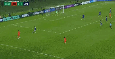 随后,胡荷韬跟进断下球权,获得绝佳的得分机会,就在胡荷韬射门的一瞬间,意识到自己解围失误的日本队后卫,第一时间飞身出来,企图用头封堵胡荷韬的射门。